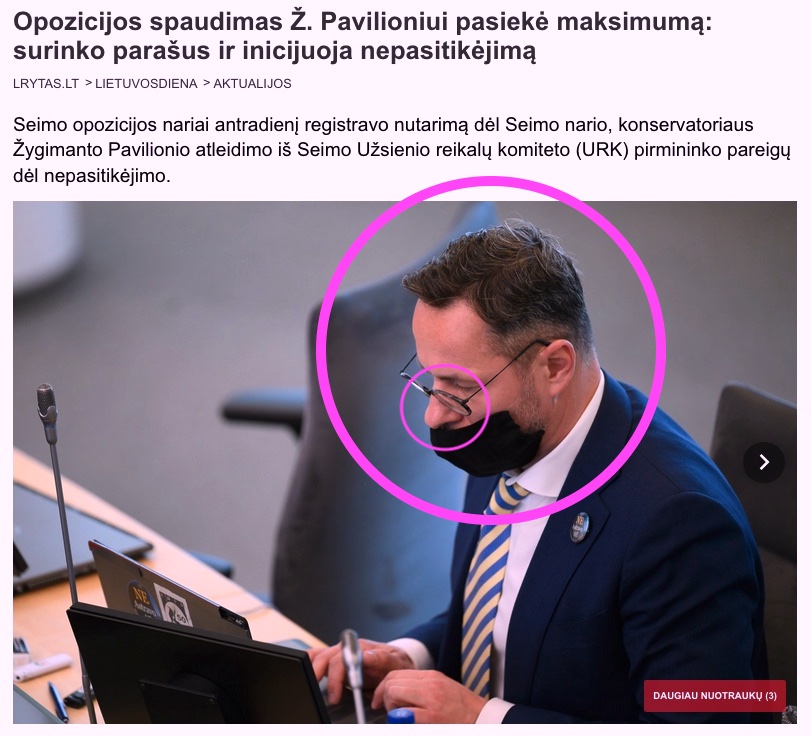 Vyriškis Seime užfiksuotas neatsakingai nusismaukęs veido kaukę nekreipiant dėmesio į tai, kad valstybėje siaučia pasaulinė koronaviruso pandemija.