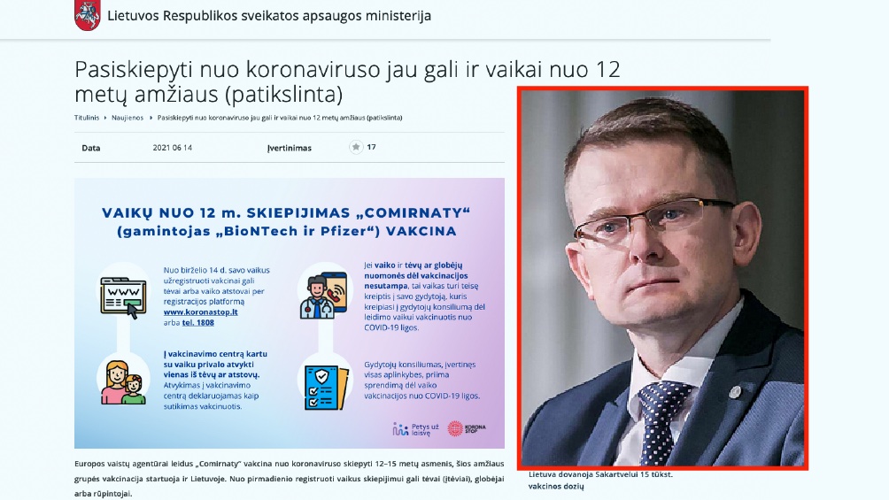 Sveikatos apsaugos ministro pareigas einantis Arūnas Dulkys, šiame poste kalbantis tik apie vakcinas ir vakcinavimąsi, birželio mėnesį išleido instrukciją vaikams.