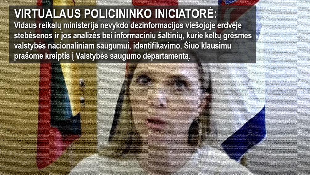 Pažymime, kad Vidaus reikalų ministerija nevykdo dezinformacijos viešojoje erdvėje stebėsenos ir jos analizės bei informacinių šaltinių, kurie keltų grėsmes valstybės nacionaliniam saugumui, identifikavimo. Šiuo klausimu prašome kreiptis į Valstybės saugumo departamentą.